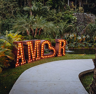 de um lago e receberá seus convidados em um ambiente intimista rodeado pelo verde. Seja de dia ou à noite, nosso espaço respira romantismo.