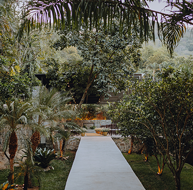 O Monte Záion é a única casa de festa que conta com românticas ruínas a céu aberto no Rio de Janeiro. Um dos ambientes mais versáteis de nossa casa, o pátio Ruínas foi construído em meio à vegetação com vista para o lago, e acesso para o salão, a pista de dança e os banheiros. O cenário, que mais parece ter saído de um filme, conta com um muro de pedras e um belíssimo vitral e recebe diversos layouts de evento com mesa do bolo, áreas de lounge, e até openbar.